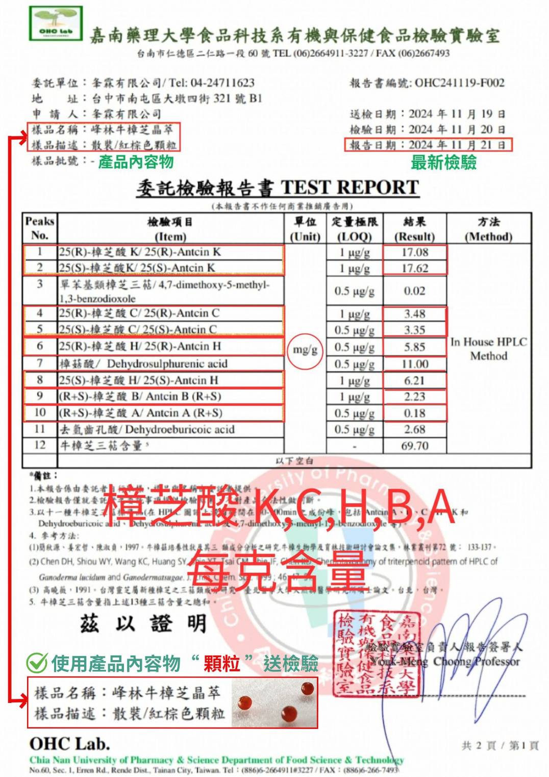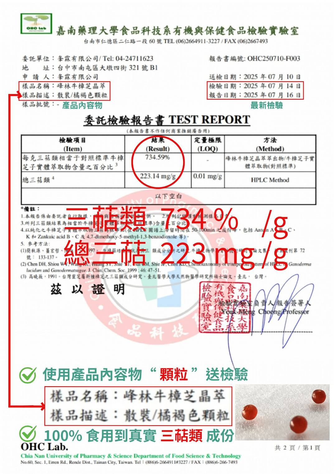 🔴 產品內容物 (牛樟芝顆粒) 送檢測